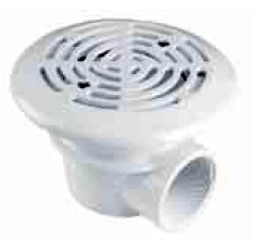 Боковое подсоединение с 2” внутренней резьбой. Изготовлен из белого ABS-пластика с фланцевым креплением решетки. Скорость на всасывании 0,5 м/сек, максимальная скорость потока 11 м3/час. Донное подсоединение с заглушкой, возможно подсоединениее гидростатического предохранительного клапана и дренажной трубы. Отверстия < 8 мм. Шурупы с резьбой M5 и медные вкладыши скрепляют фланцы и решетку. Могут использоваться в бетонных гидромассажных ваннах и как боковой забор воды.